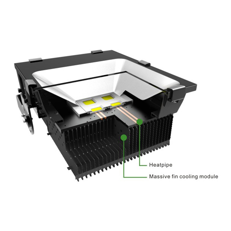 verso le alette di raffreddamento. Questa tecnologia massimizza l'efficienza di raffreddamento dell'intero sistema di illuminazione.